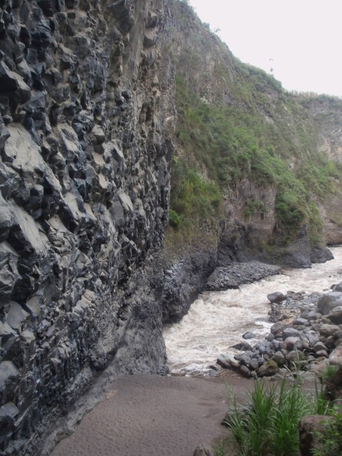 The crag was an exposure of basaltic rock cut by the Rio Pastaza: