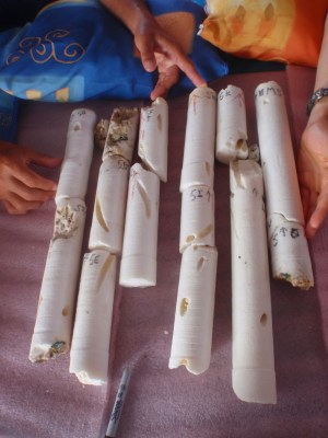 | An example of a plugged sample from this trip. Photo by Julia Cole |