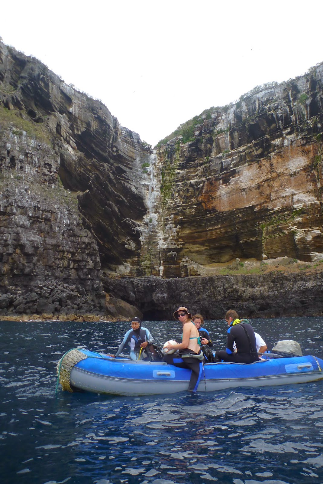 We cruised around the island to start in the somewhat calmer Arrecife Escondito (“Hidden Reef”) to start to search for large corals to sample.