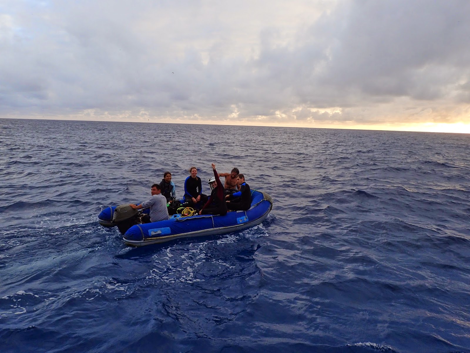On top of the rough conditions, the large corals at these islands that we want to sample are unfortunately also deep. Typically corals that we sample are in shallow water, but here the big ones are found around 50 feet. This not only means lots of compression hosing, but it also means that lots of nitrogen buildup in our bodies. With 3 to 4 hour long dives per day (dawn pre-breakfast dive, after breakfast dive, and 1-2 afternoon dives), we’re all pushing our decompression limits every day.