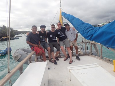 Team Niño on the Pirata: Lenin (el marinero), Stephan Hlohowskyj, Dr. Frazer Matthews-Bird, Dr. Diane Thompson (el hefe), Lenin (el capitan). Not pictured: my many other great collaborators on this project– Dr. Jessica Conroy, Dr. Jonathan Overpeck, Dr. Julia Cole, Dr. Mark Bush, Dr. Melanie Riedinger-Whitmore, Dr. Miriam Kannan, Dr. Aaron Collins