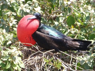 | Great frigate male displays his stuff at Genovesa. Photo credit: Diane Thompson |