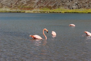 My colleagues and I have been monitoring the local climate and lake conditions of both Genovesa and Bainbridge crater lakes for the past 6 years. These lakes are unique among the Galapagos islands, as connections to the sea have maintained vibrant lake ecosystems among a very hostile and dry volcanic landscape. These lakes cook under the hot tropical sun and low rainfall, concentrating the lake to about 5 times that of the local seawater and creating a warm, very productive ecosystem. These local oases support a vibrant population of marine birds, including boobies, frigates and flamingos.