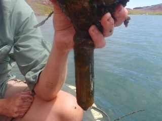 | Collecting the Bainbridge sediment trap samples in 2012. Productive lake. mmmm productive! Photo credit: Diane Thompson |