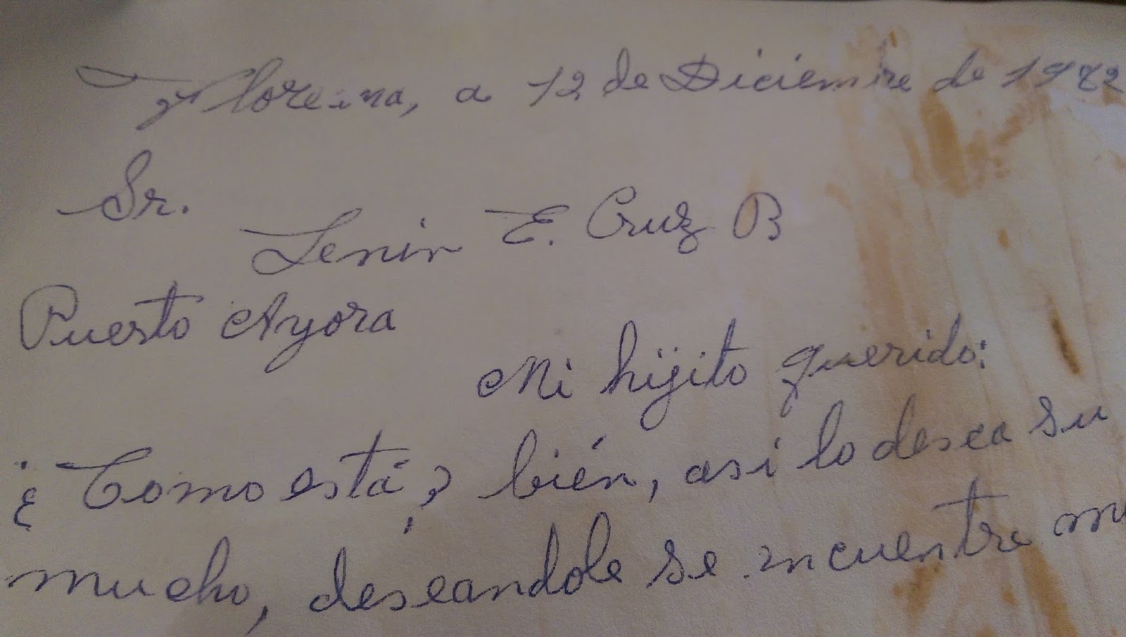 When we returned, Lenin dug up an old letter from his mother in Floreana, dated December 12, 1982